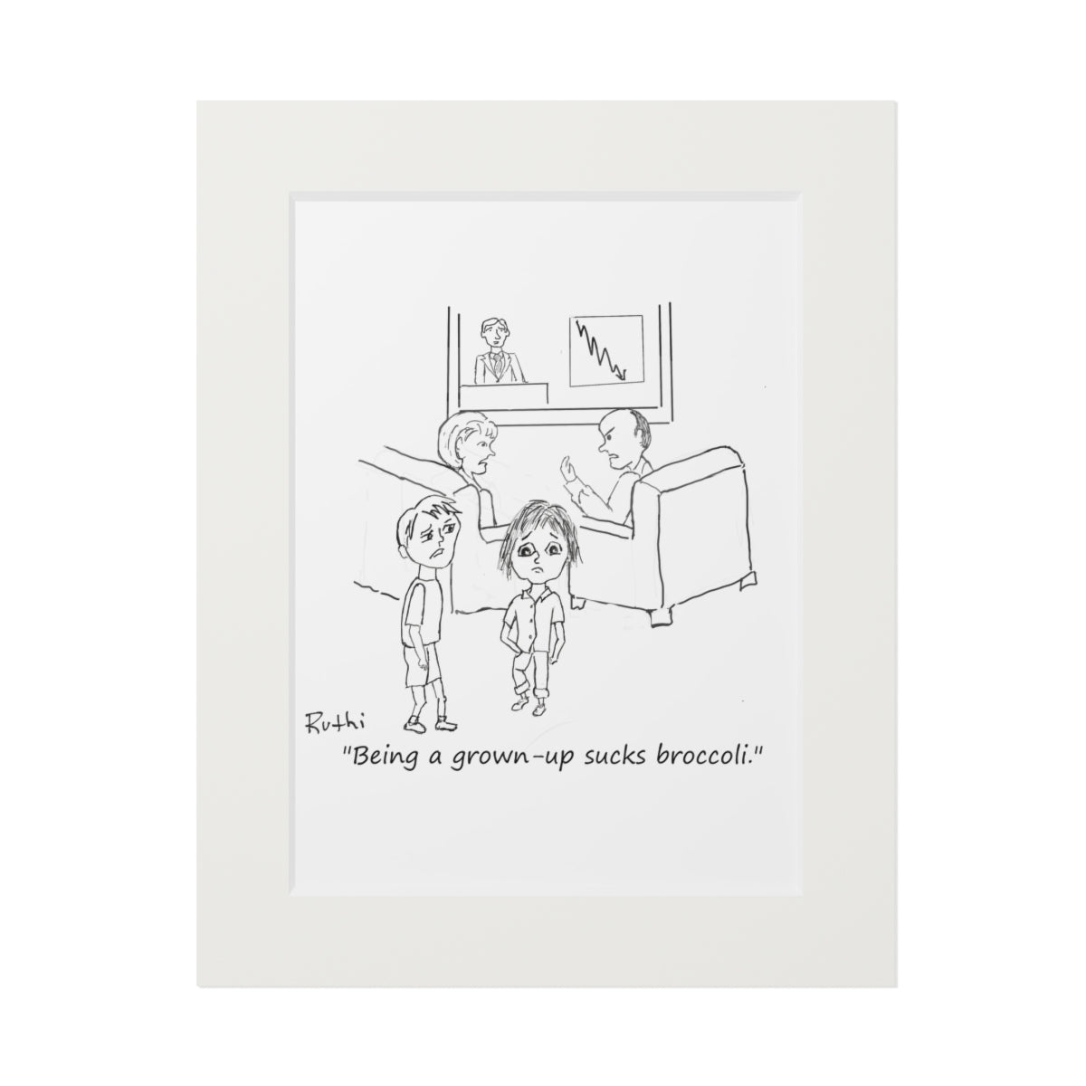 A print copy within an 8" x 10" mat frame finish, signed by Ruthi.
